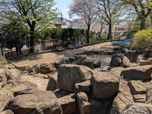 ◆妙正寺公園 ワイルドな岩山・船のある大きな砂場、大きな池、花道(?)のある珍しい複合遊具で思いっきり遊べる!