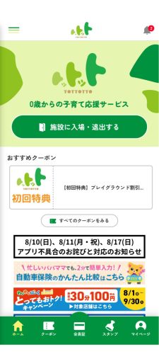 キッズーナ大宮店の利用にあたっては「トットット」アプリを事前にインストールしておくのがオススメです。