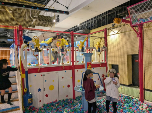 他にも大きな割れない風船がふわふわ漂っているエリアや、3歳までのお子さんがブロックで遊べるちびっ子エリアもあります。
