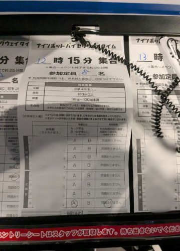 ゴーカート・セグウェイ・ポケバイを利用したいなら、入場後、とにかくすぐ!!これを書かないと1回あたり8名しか枠がないので、すぐに埋まってしまいます…!!