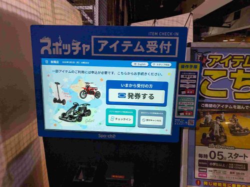 - リンク横にあるスポッチャアイテム受付機でチェックインする(当日受付したい場合も)