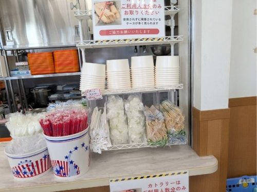 子どもを連れてると子どもの分の食事も運ぶ必要があって大変ですが、トレーやカトラリー・取り皿も用意されていて、めっちゃ助かる!!