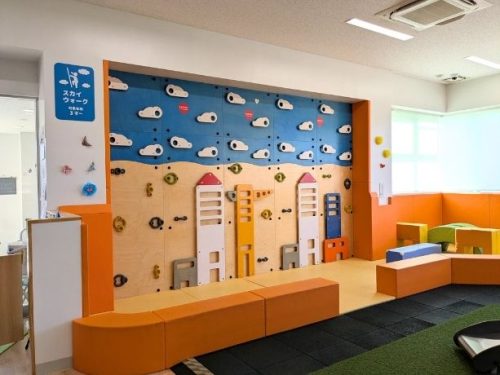 その他、わくわくパークには3歳以上が遊べる壁遊具(ボルダリング)、この日は男の子達が夢中で遊んでいた組み立てて遊べる大きなおもちゃなどもあります。