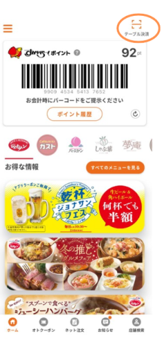 すかいらーくアプリはジョナサン下井草店でもテーブル決済ができて便利!