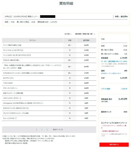 バリューブックスはマイページがとても充実していて、買取・査定の状況や結果の詳細もマイページからチェックできて大変便利です。