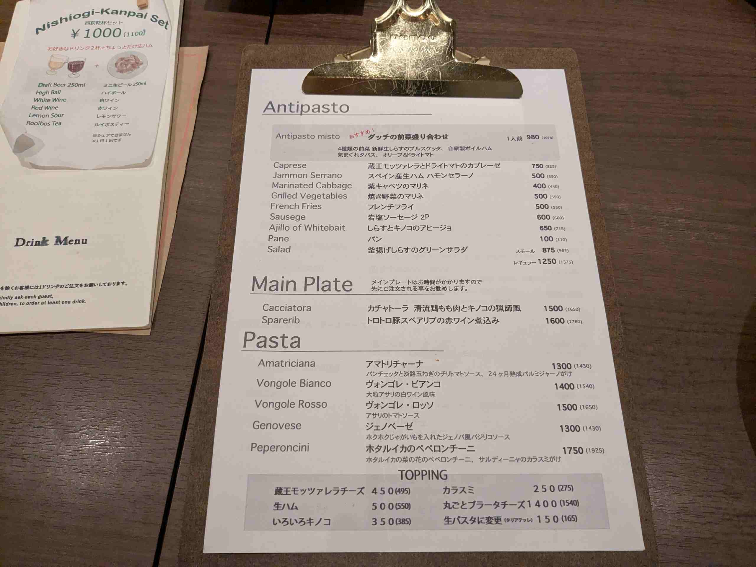 PTA役員お疲れ様会は杉並区西荻窪のDACCI mar de italia(ダッチマルデイタリア)!!なかなか予約が取れないお店のメニューに大満足でした!