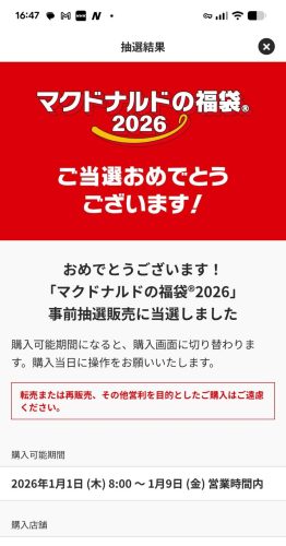 ◆マクドナルド福袋2025に初めて応募したら当選した!2025年1月1日~2025年1月9日の当選した福袋の販売期間に絶対マックに行く!の記事