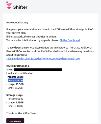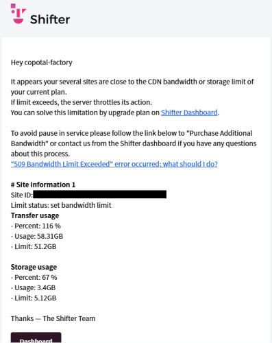 で、そのCDN転送量はShiterのプラン毎に上限が決まっており。
