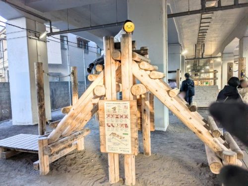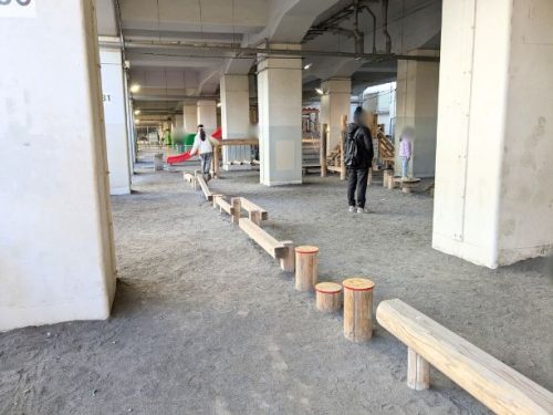 吉祥寺の高架下公園はワイルドな遊具で小学校高学年も思いっきり遊べて楽しい!!迷路や色んな平均台・忍者修行気分になれる斜めの板など!君はどこまでできるか…!?