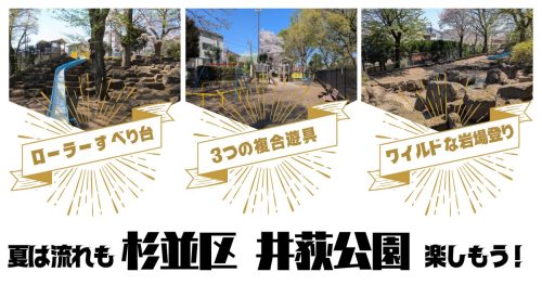 杉並区の井荻公園は長いローラーすべり台と立体的な造りが面白い!複合遊具が3つもあるよ