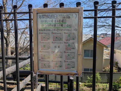 開園日は年間を通じて決まっています。(毎月第2火曜・第4金曜、6月~9月は第1火曜が追加)