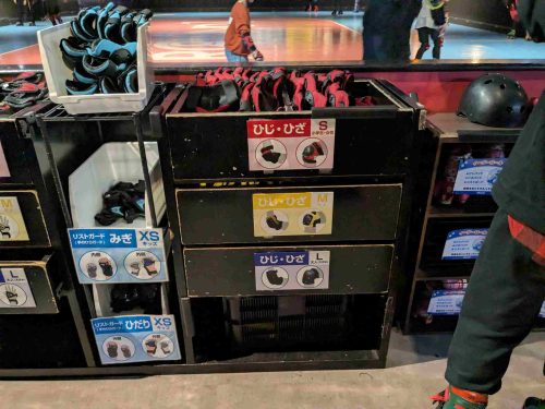 ローラーリンクをローラーブレード・ローラースケートで利用する場合、自分のサイズに合う靴や肘あて・ひざあて・リストガードなどは自分で持ってきて自分で装着します。