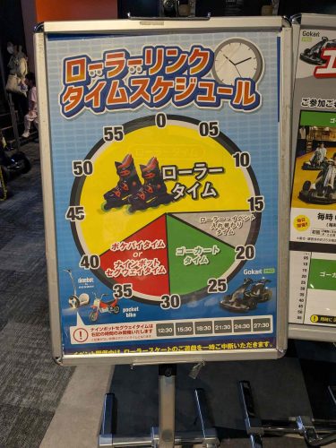 - ゴーカートは毎時5分、セグウェイ・ポケバイは毎時15分にローラーリンクに集合する