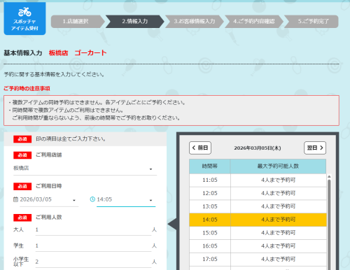 - 日時・人数を入力