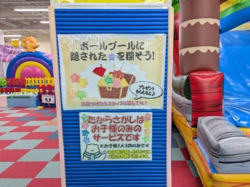 こちらの広すぎるボールプール内には星形のボールがあるそうで、見つけて持って行くとプレゼントがもらえるそうです。