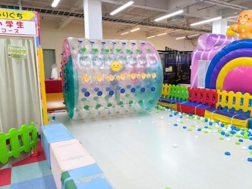 こちら↓は5歳さんまでのエリアですが、十分すぎる広さのボールプールや迷路になっているふわふわトランポリン、すべり台、サイバーホイールなどなど、、、これだけで普通に室内遊園地として営業できると思います。。。
