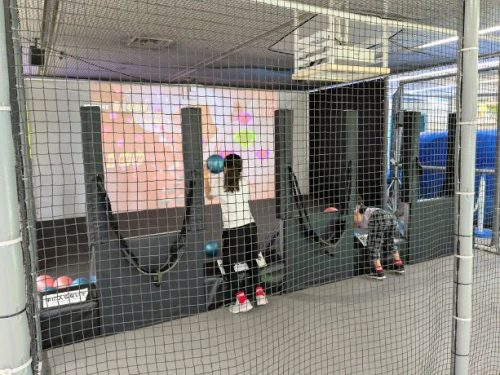 ↓こちらはボールが吊り下がっているので、タッチして、飛び込む!みたいな遊び方もできます😆