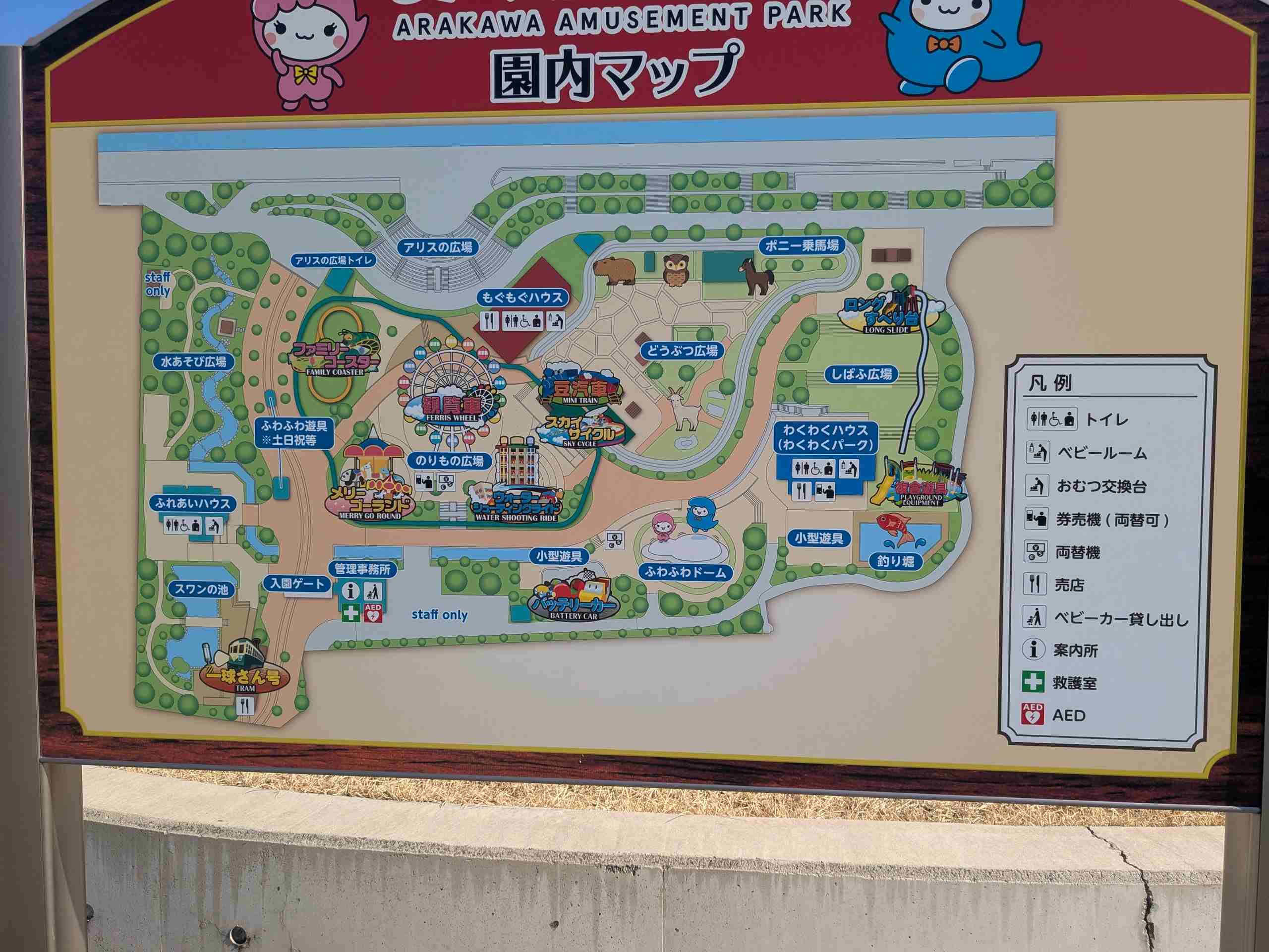 あらかわ遊園公式HPにもありましたが、あらかわ遊園の園内マップはこちらです。