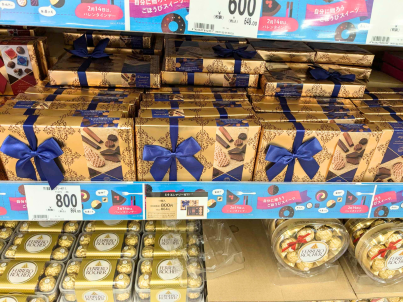 定番のお酒の入ったものや、もらった方よりあげる子どもを重視した(!?)ありがたいちいかわ・すみっコぐらし・アンパンマン・トミカ、ママ向け?と思われるもの、チロルチョコ・義理チョコも!