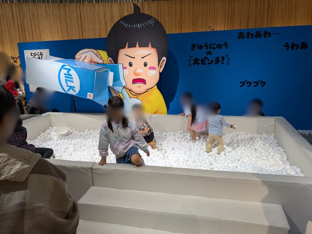 テレビで取材されたこともあってか、ふわふわの「牛乳」で遊べるこちらの↑「ぎゅうにゅうの大ピンチ!」や