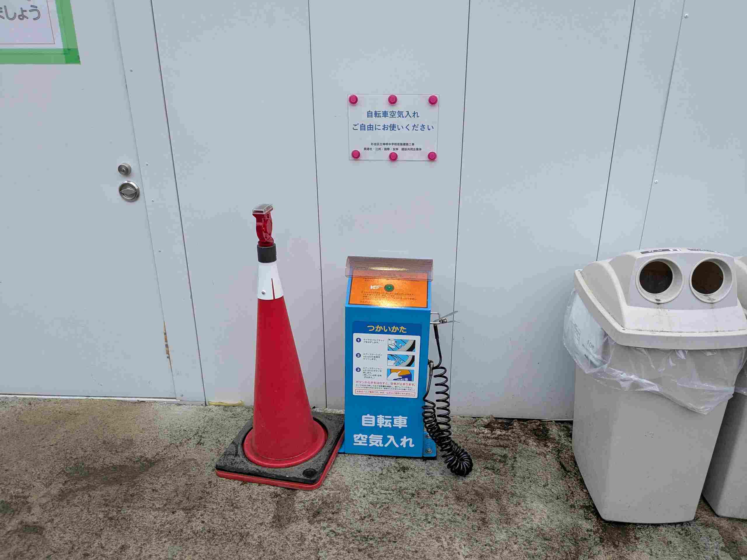 杉並区立神明中学校(改築工事中)にある電動の自転車空気入れは無料!!