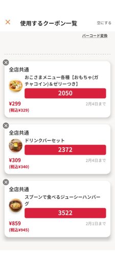 小学3年生でもまだおこさまメニューな娘は、本日も「おこさまおにぎりプレート(ゼリー・ガチャコイン付き)」で、599円(税抜)がなんと299円!!(税抜)