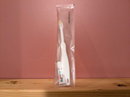 OMO5東京大塚 by 星野リゾートはアメニティはセルフサービス 子ども用歯ブラシにはいちご味の歯磨き粉
